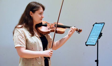 „Das ist ein großer Vorteil“, ergänzt Elisaweta Oreschkow, derzeit eine der Konzertmeisterinnen des Hochschulorchesters. Sie berichtet, dass das digitale System bereits in einer ersten Probenphase mit dem kompletten Orchester getestet und von allen positiv aufgenommen wurde. Anfangs herrschte jedoch Skepsis: Was, wenn die Technik streikt und ein iPad kurz vor Konzertbeginn versagt? Die Sorge war groß, doch diese Bedenken erwiesen sich in der Praxis als nebensächlich. Viel wichtiger ist die Zeitersparnis: Die Eintragungen, die früher 50 Stunden Arbeit für Ludwig und sein Team bedeuteten – etwa das Markieren von Bogenstrichen oder Atemzeichen in den einzelnen Notenstimmen – können nun zentral erstellt und mit einem Klick auf alle Instrumentengruppen übertragen oder gelöscht werden.