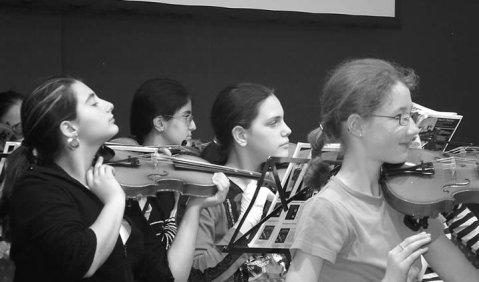 Auf der Bühne des Musikmesse Forums finden neben den Podiumsdiskussionen jedes Jahr auch Präsentationen der ausstellenden Musikverlage statt. Und am liebsten lassen sich die Besucher im Zuschauerraum nieder, wenn sich etwas bewegt. Ein schönes Beispiel war etwa die Demonstration des Joh. Siebenhüner Verlages (im Foto rechts): Klassenmusizieren mit Streichern anhand der Schule „Alles für Streicher“ oder der Vortrag eines Chors aus Georgien, den der Gehann Musikverlag auf die Bretter brachte. (Foto ganz rechts). Der Gitarrist Jens Kienbaum referierte über die Veränderungen im Gitarrenunterricht im 21. Jahrhundert, seine Schulen sind im AMA Verlag erschienen, und die Komponistin Siegrid Ernst erzählte für das Archiv Frau und Musik aus ihrem Leben…