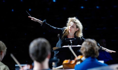 Bilder als Partitur zu lesen, wie es Charlotte Hugs Orchesterwerk „Nachtplasmen“ verlangt, war wohl eine der größten neuen Herausforderungen für die Akademisten in diesem Jahr. Dabei handelt es sich weder um eine graphische Notenpartitur, noch um Improvisation. Es kommt dem Eintauchen in ein anderes Denksystem gleich, das zwischen hören und sehen keine Grenzen zieht: „Nachtplasmen“ ist Teil eines künstlerischen Gesamtkomplexes, den die Schweizer Bratschistin, Komponistin, Zeichnerin und diesjährige „artiste étoile“ im Rahmen des Festivalthemas „Nacht“ entwickelt hat, und baut auf abstrakten Graphitzeichnungen auf - die Künstlerin nennt sie „Son-Icons“, also Klangzeichnungen. Sie stellen Gestus und Struktur imaginierter Klänge dar, die Charlotte Hug in Einzelcoachings die Academy-Studenten zu entziffern lehrte und dabei gar nicht so leicht zufriedenzustellen war. Der Klang sollte nämlich eine genaue Umsetzung der Zeichnung sein, nicht bloß visuell inspirierte Improvisation. So wurden im Vorfeld erarbeitete Klangbausteine im Konzert in dreiteiliger Dramaturgie zusammengebaut, teils nach Hugs Dirigat, teils nach einer Bildpartitur, die auf eine himmelszeltartige Leinwand, für Orchester und Publikum sichtbar, in den dunklen Raum projiziert wurde. Für die Akademisten keine einfache Aufgabe, doch zeigten sie sich, trotz vereinzelter Skepsis, auch diesem ungewohnten Ansatz gegenüber offen und initiativ, sodass ein facettenreiches Werk mit geheimnisvollem, fast archaischem Faszinationswert entstand.