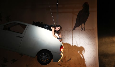Nachdem sie auf einem weißen Auto sozusagen akrobatisch geturnt hat, zieht sie ein Schwert und wir wissen: Diese Frau wehrt sich, sie wird sich nichts gefallen lassen. Und dann tobt sie regelrecht durch 90 Minuten, erzählt von ihrer Kindheit, von ihrer in einem Müllsack versteckten Geige, von einem Maulbeerbaum, von ihrer Sehnsucht nach dem Singen. Sie erzählt aber auch explosiv von der Lebensfreude ihrer Heimat, einem in Fackeln getunkten Bericht über das persische Neujahrsfest. Und im Prozess der Aufführung gelingt mit der fantasiereichen Unterstützung des Videokünstlers Kai Wido Meyer Molavians immer stärkere Annäherung an die Opernfigur, für die es mehrere Höhepunkte gibt: die Seguidilla, die Habanera mit ihren so unterschiedlichen Stilebenen wie der persische Sprechgesang Naghali oder auch ein Brecht-Weill’scher Ton, das Todesmotiv im Kartenquintett, aber auch das Schlussduett.