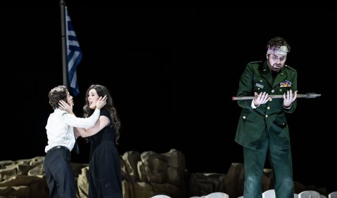 In einem für diese komplexe Partie sehr frühen Entwicklungsstadium riskiert Sebastian Kohlhepp den Idomeneo. Die Koloraturfolgen in „Fuor del mar“ singt er mühelos und findet in der Kavatine am Ende der langen Opferszene nicht zu der in der Komposition geforderten Ausdrucksdichte. Ana Maria Labin gestaltet Elettra wie eine im Luxusinternat vom Ernst des Lebens abgeschirmte Luxusbraut mit Zielort Ehehafen. Dass dieses Harmoniebedürfnis Maske sein könnte, hört man nicht. Kathrin Zukowski gibt eine lyrisch mustergültige Ilia, von deren Aufruhrmomenten kaum etwas in die seraphische Stimmführung dringt. Anna Lucia Richters Idamante zeigt sanft wärmende Timbre-Farbspiele und ist mit diesen ein idealer Bräutigam für Ilia, der am Ende mit dem Nachwuchs mit dem entschlossenen Vorsatz zum Vergessen über die Kriegsgräber tollt. Anicio Zorzi Giustiniani darf beide Arbace-Arien singen und wertet so die Figur auch qualitativ zur weiteren Hauptpartie auf.