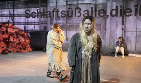 Der Autor war von den Biennale-Machern zu einem Zeitpunkt beauftragt worden, als in dessen ukrainischer Heimat bereits ein Krieg herrschte, der im Westen aber niemanden so recht interessierte. Wie sein Libretto wohl mit dem heutigen Wissen, vor dem Hintergrund der brutalen Eskalation ausgesehen hätte? Das Szenario – das Niemandsland an der Grenze eines osteuropäischen Staates zum Westen – entfaltet Zhadan jedenfalls nicht, um eine spezifische Geschichte zu erzählen. Es dient ihm als Erfahrungsraum, um über Vertreibung, Flucht, Zurückweisung und die Unmöglichkeit zu reflektieren, an einem Ort anzukommen, an dem man unerwünscht ist. So etwas wie Handlung ist nur in den Dialogen zweier Männer angedeutet, die aus unterschiedlichen Gründen in Abschiebehaft sitzen: der eine als Soldat und angeblicher Kriegsverbrecher, der andere als Wirtschaftskrimineller (neben Andrew Robert Munn entwickelt vor allem Carl Rumstadt eindringliche Prägnanz). Ansonsten ist ein kleiner Chor der Hauptakteur. Mal kommentiert er von oben, also aus dem Westen herab, das Geschehen, zumeist verkörpert er aber eine Gruppe Geflüchteter, aus denen eine Frauenstimme – leider von einer Schauspielerin gedoppelt – hervortritt.